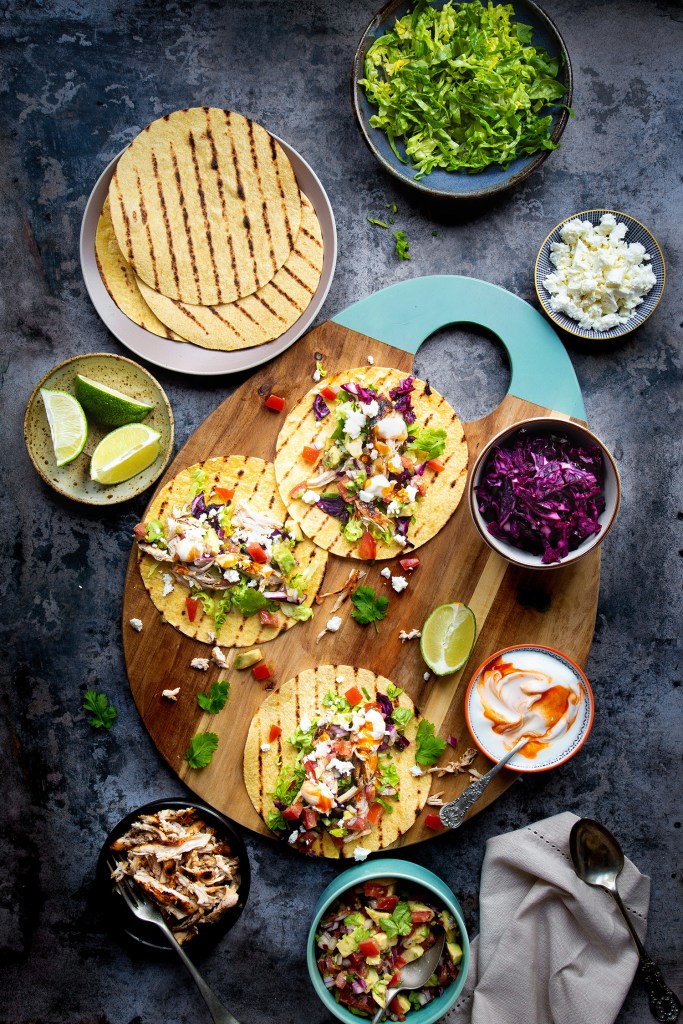 I decided to make chicken tostadas, which is basically a flat taco! Pretty different right? 😉 You can use corn or wheat tortillas and either fry or toast them and then they are ready for your fillings. I used Old El Paso’s corn tortillas because I love the flavour of them. I toasted mine until crisp on a grill pan as I didn’t fancy frying them and it worked a charm.