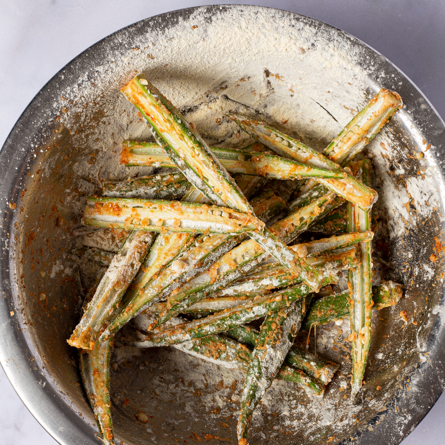 If you saw my post last week, you may have seen that I had some fresh okra to use up. I love okra but my husband is not a huge fan. So I thought what best way to get him to eat these than to use Dishoom’s Okra Fries recipe. He demolished them, funny that.