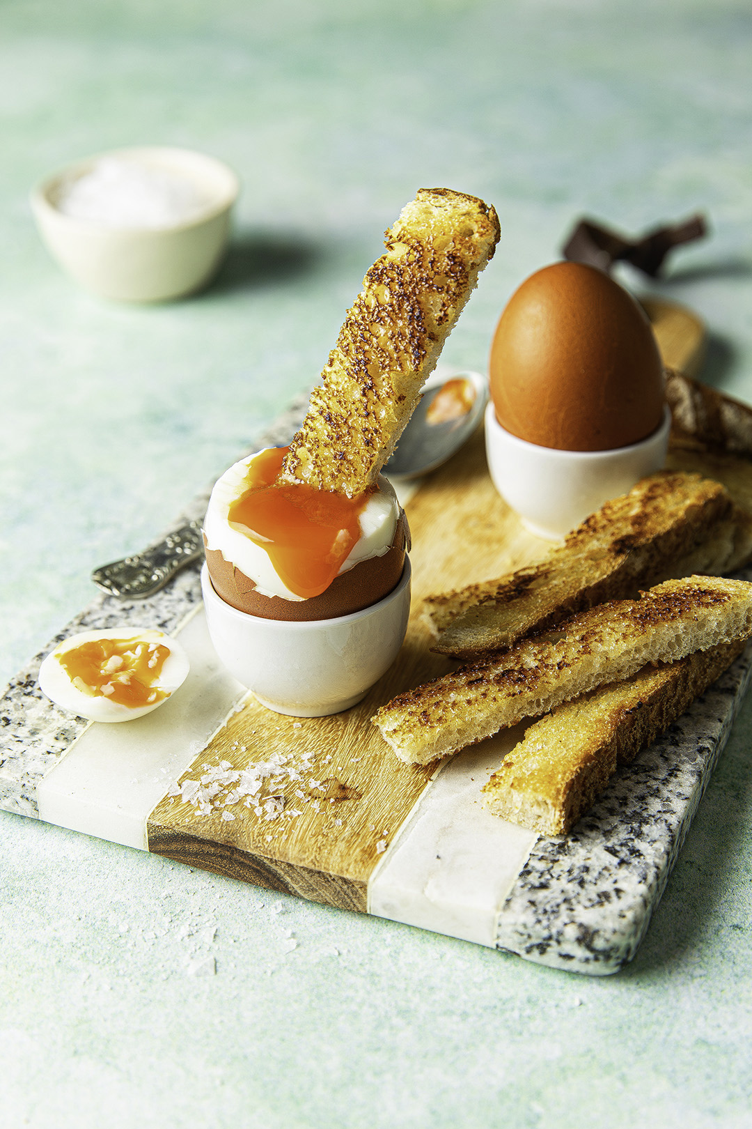 Is there anything better than a simple boiled egg and soldiers? It’s something my husband and I both loved as kids and now our children love it too. Why is it so fun to eat? Is it the anticipation to see if the yolk is runny or not? Or is it the sensation of dunking hot buttery toast into a warm soft egg sprinkled with a little Maldon sea salt? Who knows. All I know is that it works.
